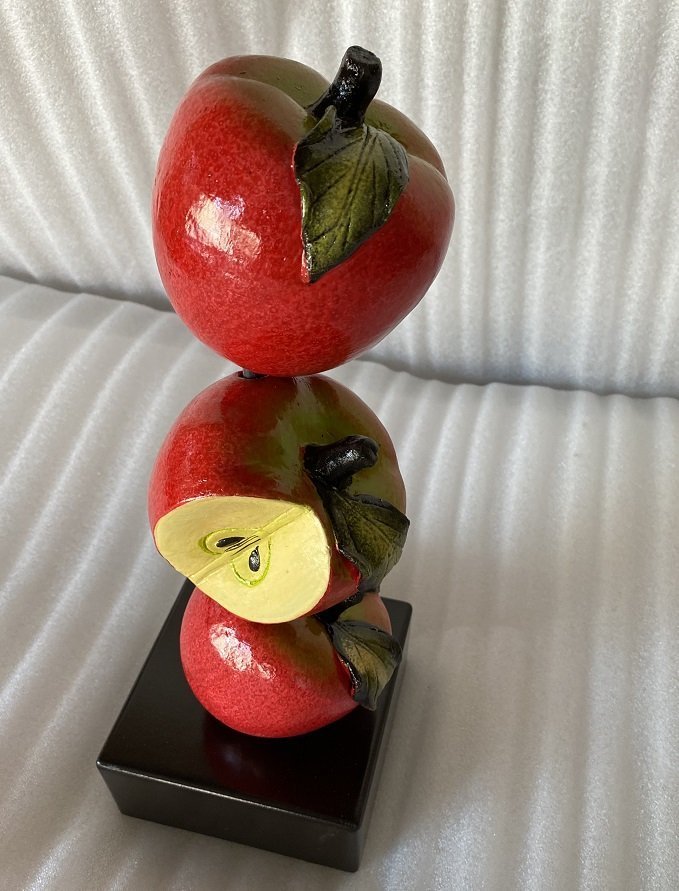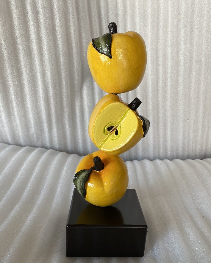 Una brocheta está hecha de barro solamente que la base que la conforma es de madera MDF que le hace que el producto sea más atractivo que puede ser para un centro de mesa o también podrían ser como esquinero, puede ser manzana, mamey, pera.De un terminado natural con un poco de terminado alto brillo aparte de que también puedes combinar tu brocheta a como sea tu gusto escoge tu brocheta con espacio artesano.