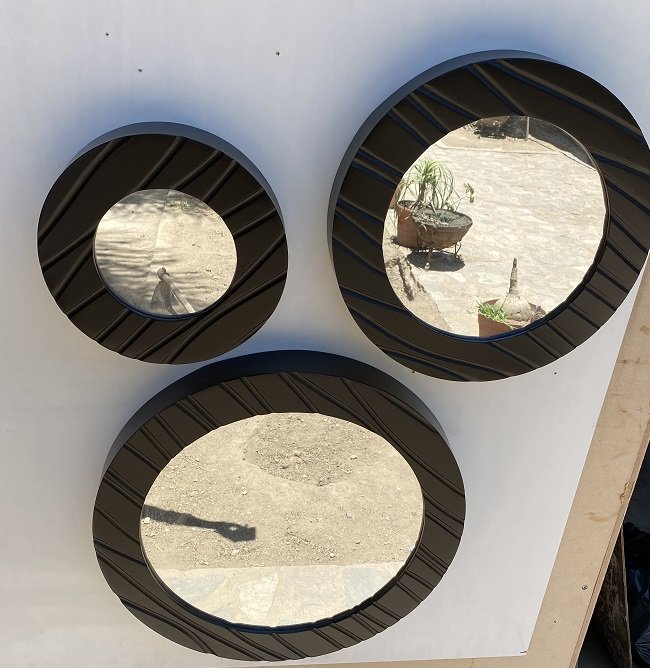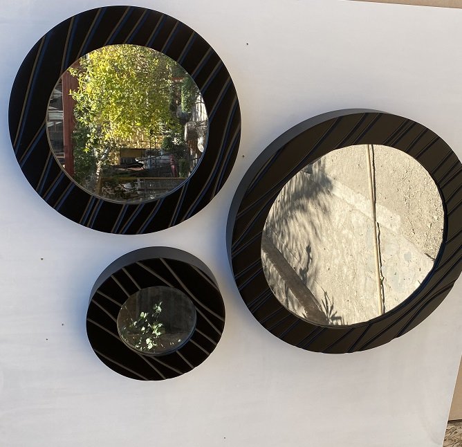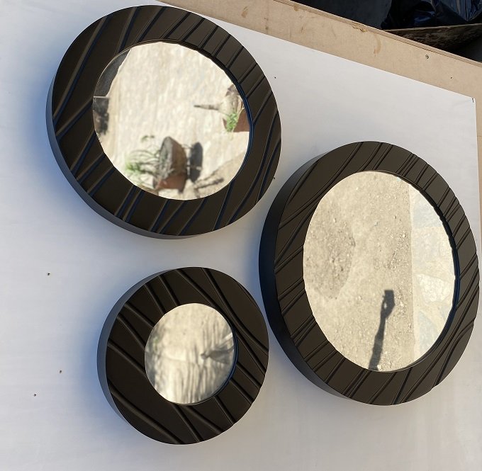 Espejos redondos en juego de 3, en modelo lisos y ranurados en una variedad de colores con el terminado en poliuretano con una excelente calidad.